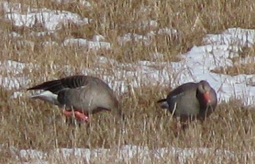 Kyllä - valaistusolosuhteet vaikuttavat suuresti siihen, miltä hanhien selät näyttävät. Sama pätee jalkoihin, joiden kuuluukin olla punertavat merihanhella. Kokonaan punertava porkkananokka vielä "naulaa" määrityksen.